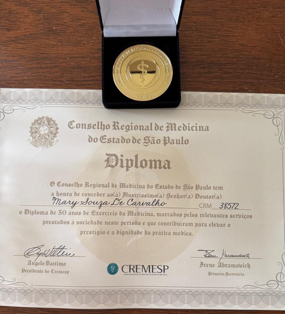 A Acadêmica Mary Souza de Carvalho foi diplomada pelo Conselho Regional de Medicina pelos seus cinquenta anos de exercício da medicina.