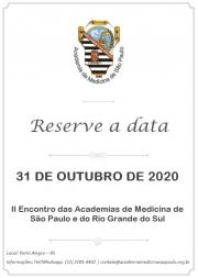RESERVE A DATA – 31 de Outubro de 2020 – II Encontro das Academias de Medicina de São Paulo e do Rio Grande do Sul 26.11.2019 | Acadêmicos, Gerais